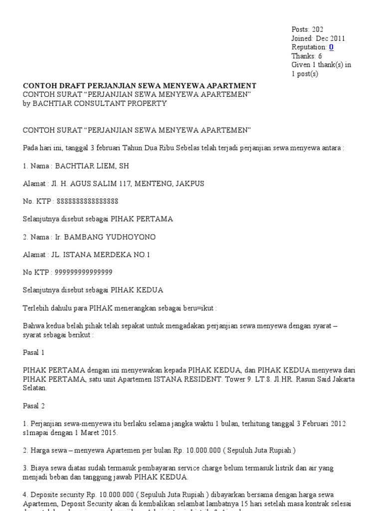 Perjanjian Sewa Menyewa Apartemen Pdf